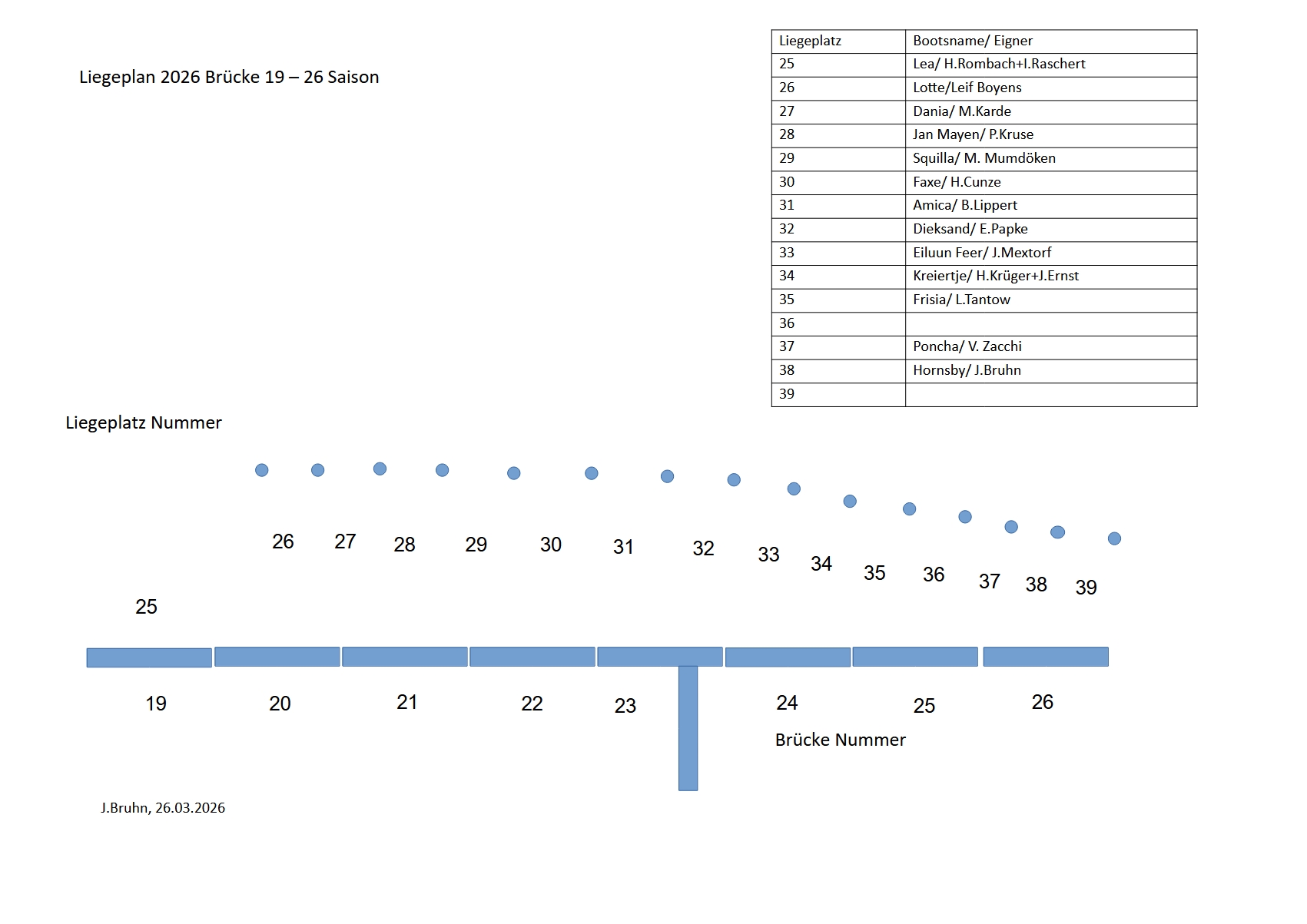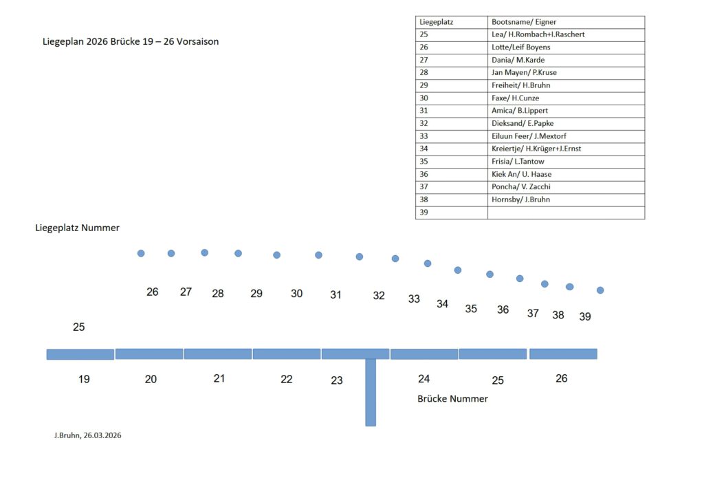 Brücke 19 – 26 / Liegeplatz 25 – 39 Vorsaison