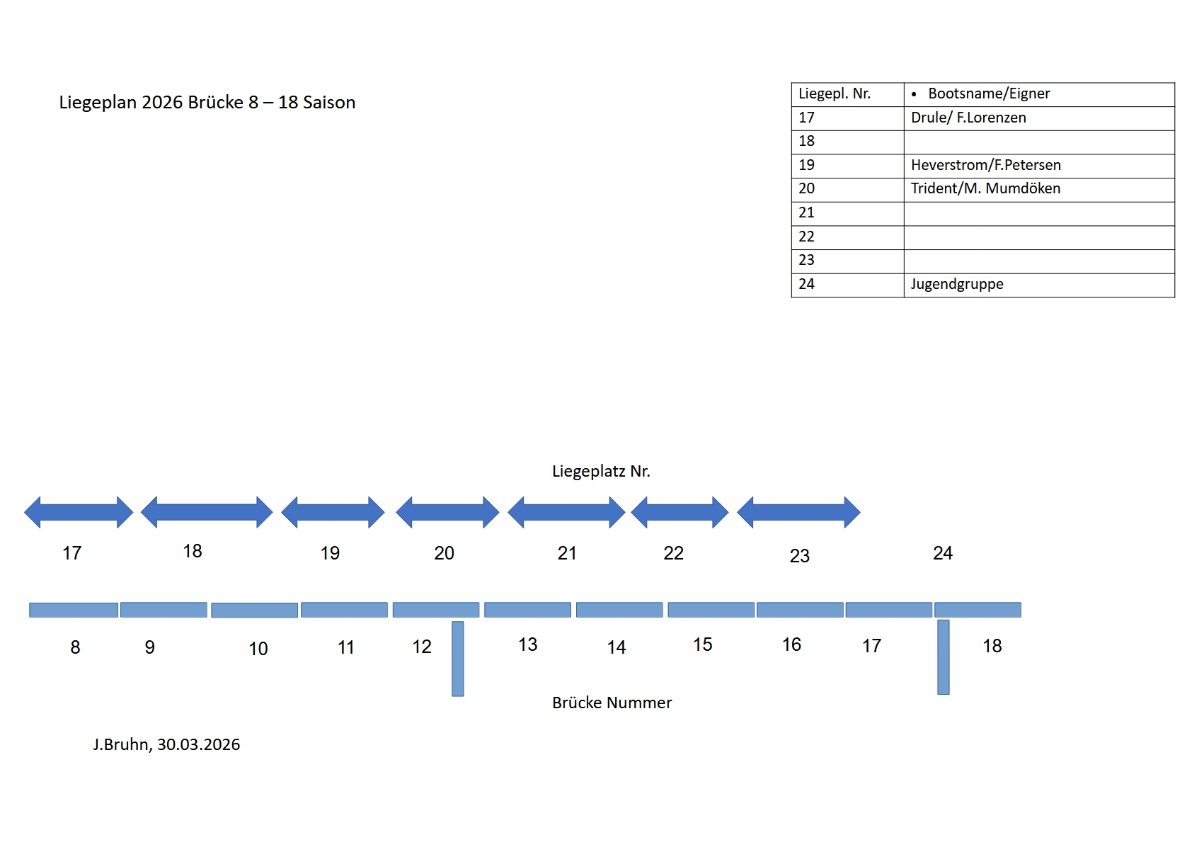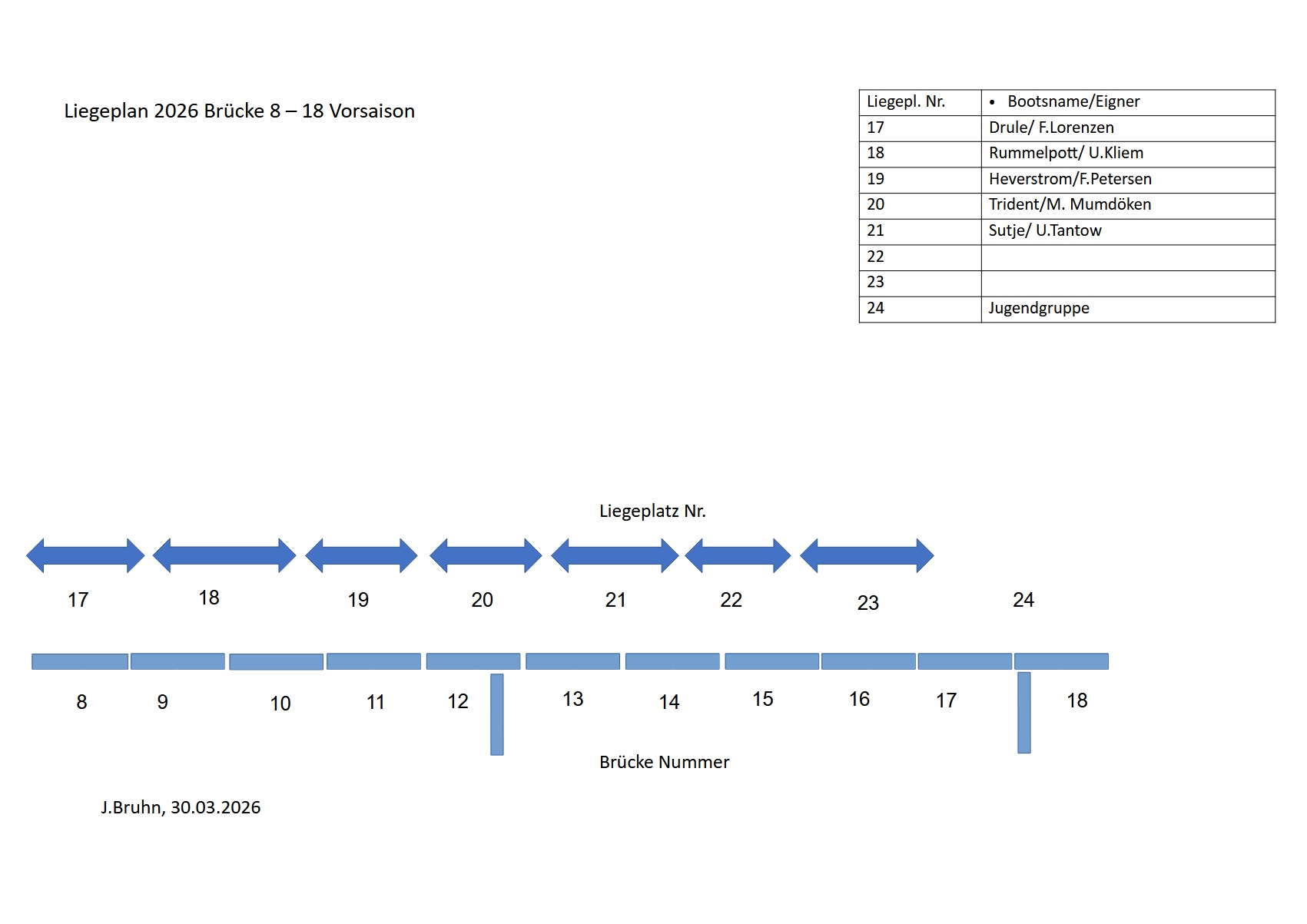 Brücke 8 – 18, Liegeplatz 17 -24 Saison